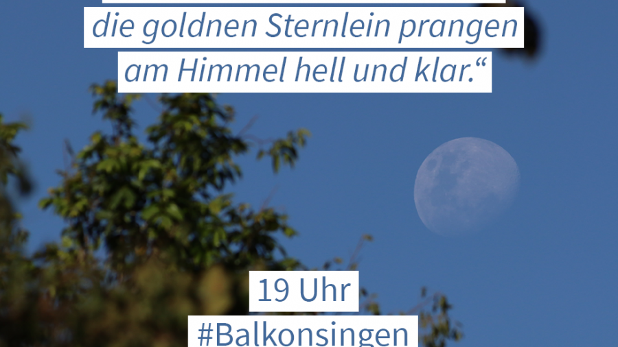 Die Evangelische Kirche in Deutschland (EKD) hat erstmals am Mittwoch, 18.03.2020 die Menschen dazu aufgerufen, um 19:00 Uhr das Lied "Der Mond ist aufgegangen" von ihren Balkonen oder aus den Fenstern zu singen oder zu musizieren. Die passenden Noten dazu findet ihr in unseren Downloads.
