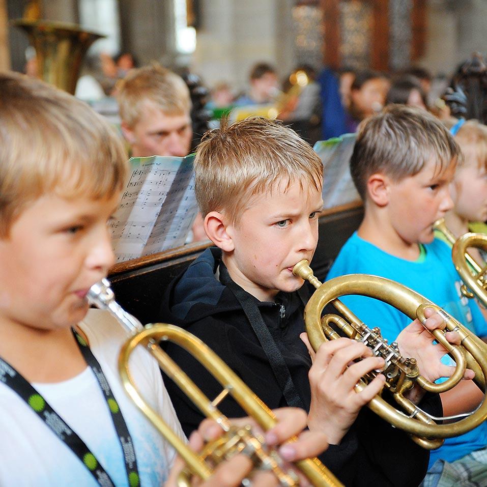 Der andere Weg ist das Modell der Jungbläserschule. Sie funktioniert so ähnlich wie eine Musikschule: Kinder oder auch erwachsene Jungbläser melden sich in einem Posaunenchor zum Unterricht an, und der jeweilige Posaunenverband organisiert einen Lehrer, der den Unterricht hält. In Regel geschieht das vor Ort, z. B. im Kirchgemeindehaus, und zwar in Form von Gruppenunterricht oder auch Einzelunterricht. Nehmen Sie am besten Kontakt mit Ihrem „zuständigen" Verband auf, also entweder der Verband Ihres Gebiets oder Ihrer Konfession. Hier finden Sie eine